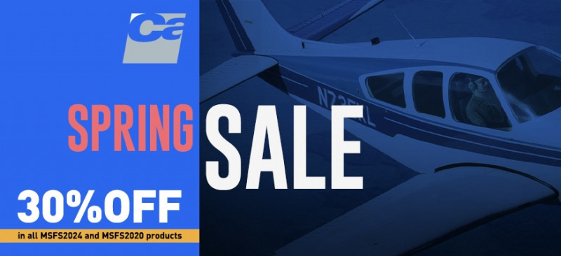 Die Entwickler-Gruppe für Flugzeuge im Microsoft Flight Simulator Carenado hat einen Frühjahrs-Sale gestartet. Bis einschließlich den 15. April gibt es 30 % Rabatt auf die Flugzeuge für den Microsoft Flight Simulator 2024 und 2020. Den Rabatt gibt es auf carenado.com.